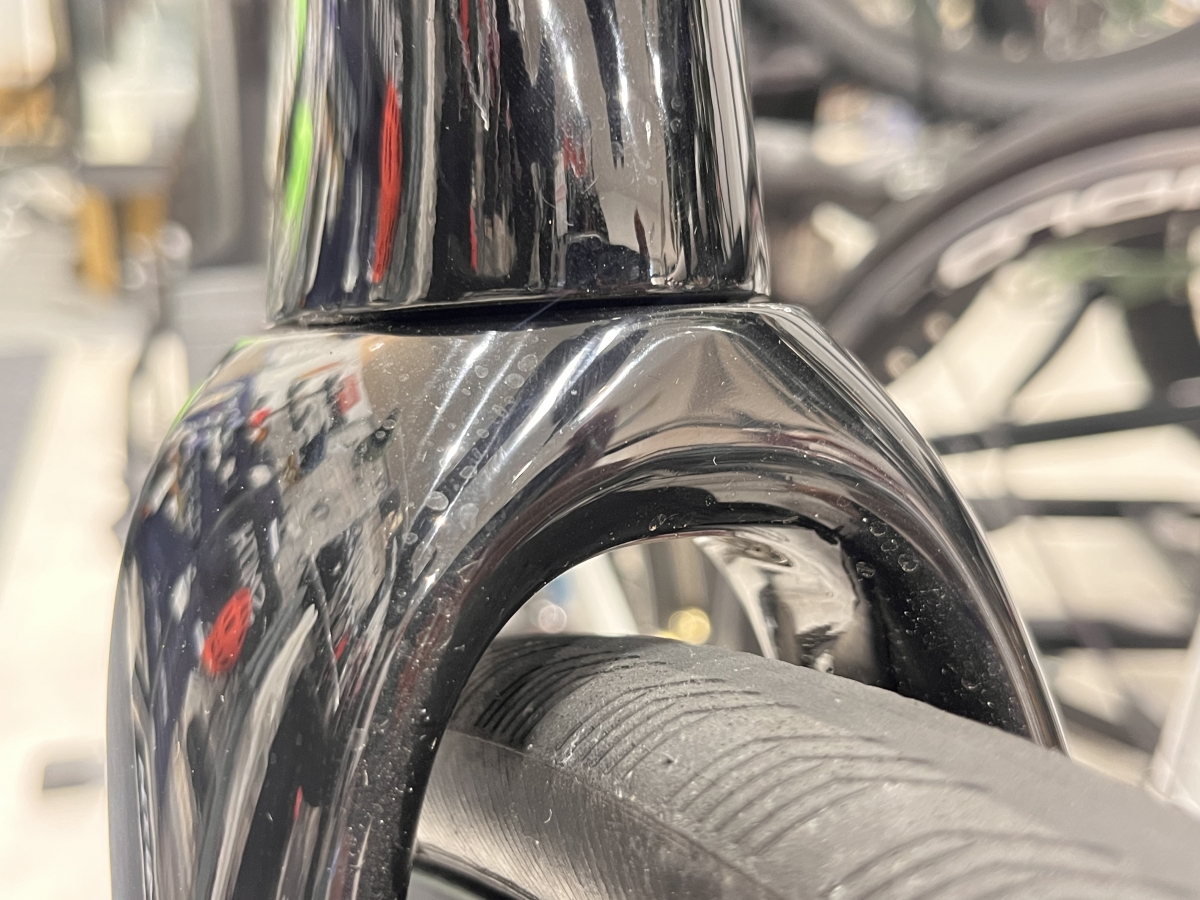 最後に実際の車体での使用状況をお見せします。松野のSuperSix EVOはEX KEEPERを施工済みなのですが、先日雨上がりで水たまりの多い状況で走りました。