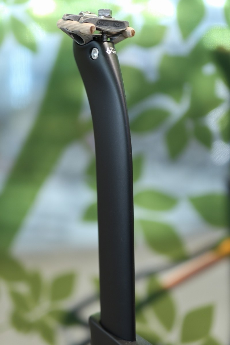 シートポストはかなり細身です。やぐらは3Dプリンターでチタンで出来ています。