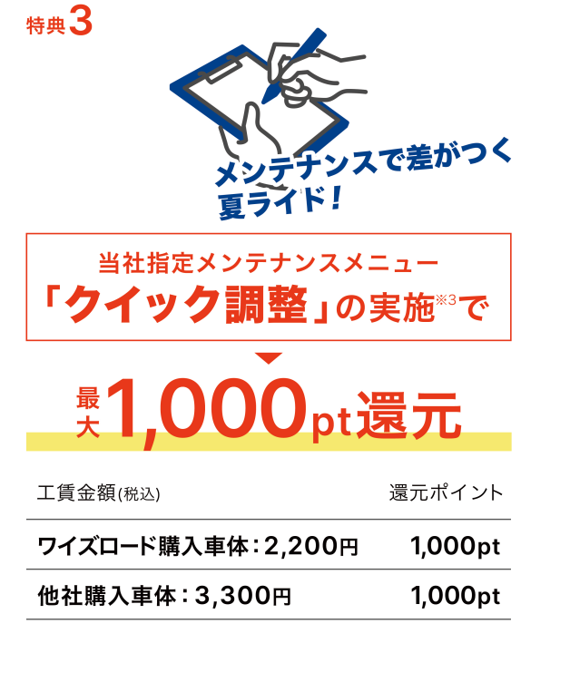 当社指定のメンテナンスメニュー「クイック調整」の実施で1,000pt還元いたします。各部ガタの点検やブレーキ・変速の調整、チェーンへの注油、タイヤの空気充填を行います。横浜ワールドポーターズ店では作業や修理は予約制となりますので必ずお電話でご予約をお願いいたします。