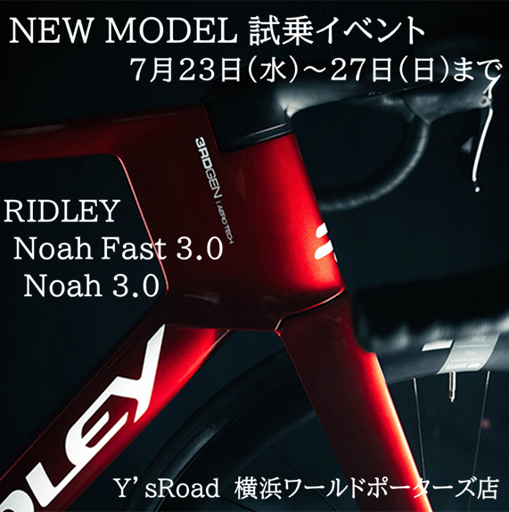 今回は告知がギリギリになってしまいましたが今週7月23日(水)よりモデルチェンジでよりエアロロードとして磨きのかかったRIDLEY Noah3.0シリーズに試乗できるイベントを開催しますのでご紹介いたします。