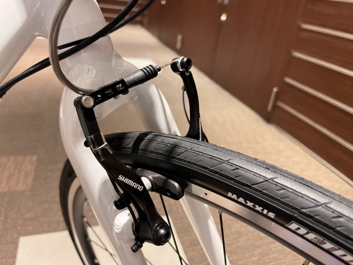 RAIL LIGHTはその名の通り軽量なモデルです。スポーツバイクではディスクブレーキが主流となりつつあるのですが、あえてVブレーキ(リムブレーキ)を採用しています。