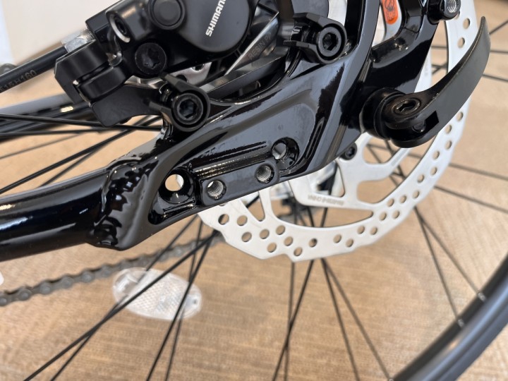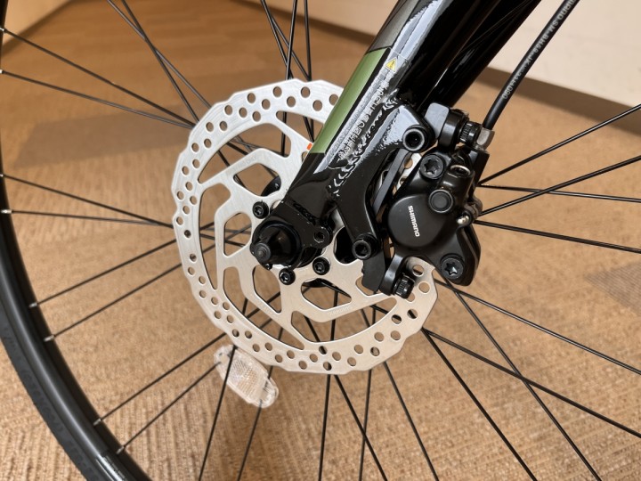 他社製品のOEMも請け負うMERIDAなだけあり、コストパフォーマンスはトップクラス!クロスバイクの中でもかなり安価な部類なのですが、ブレーキはしっかりSHIMANO製の油圧ディスク。他社バイクで同じぐらいの価格帯ならほとんどはTEKTROなどのはず。