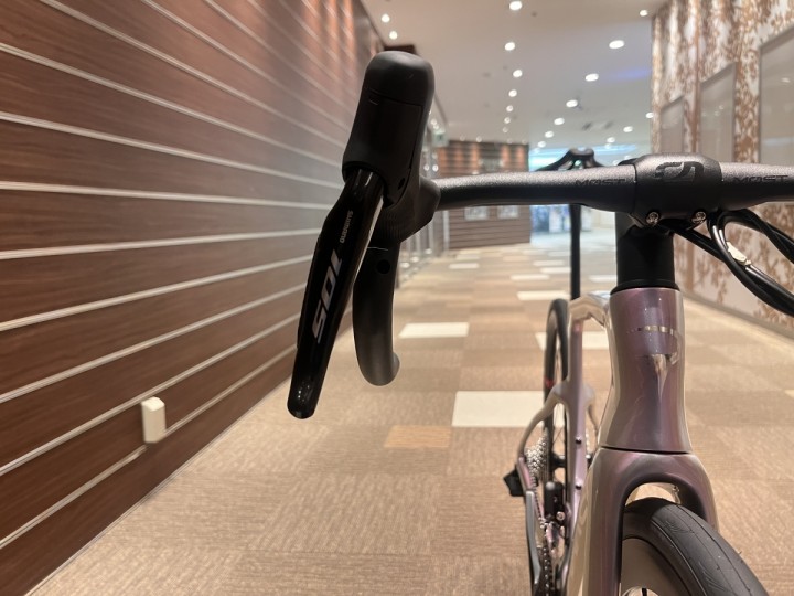 ちなみにハンドルはトレンドを取り入れ、ブラケット部分が狭くフレア形状になっています。