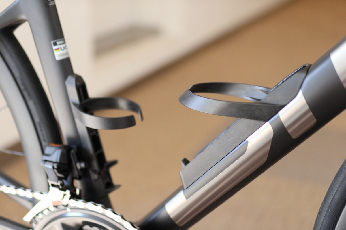 フレームのボトルケージの隙間をなくし空力性能を高めています。