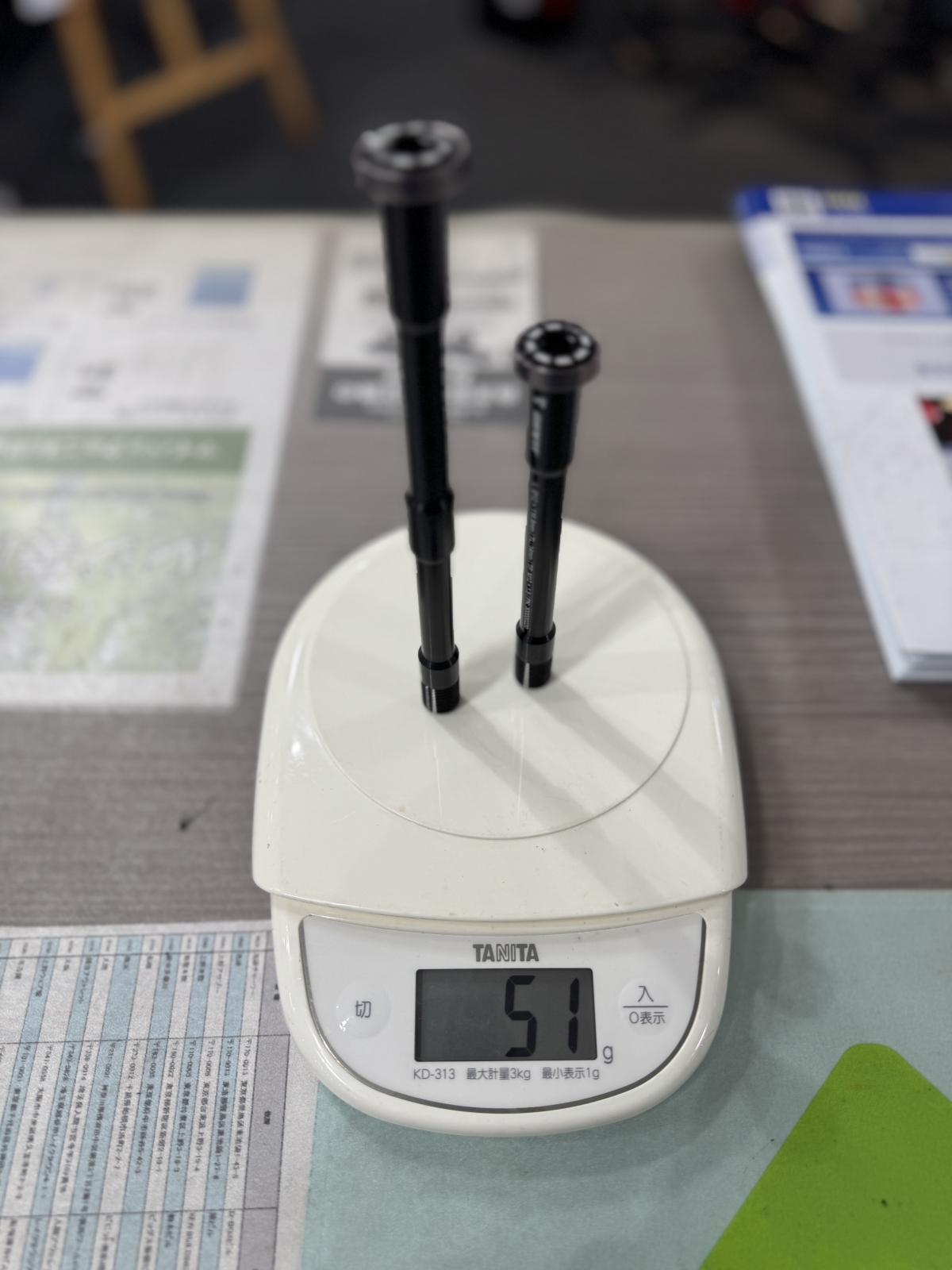 他社の軽量スルーアクスルでカーボン素材のものがあるのですがそれも最初は候補に挙がっていました。