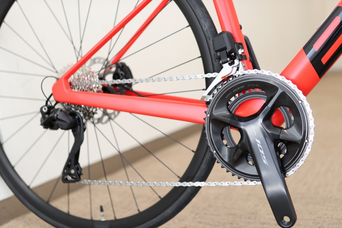 レッドカラーにハーフマットカラーでBMCらしさを感じるバイクです。