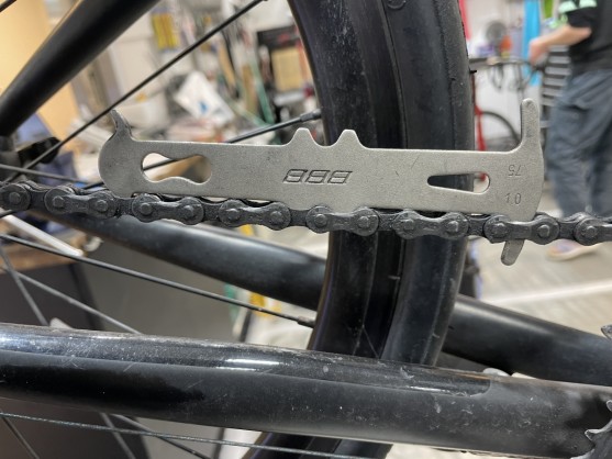 別件修理で来店されたお客様の自転車を念のためチェーンの伸び具合をチェックしました。