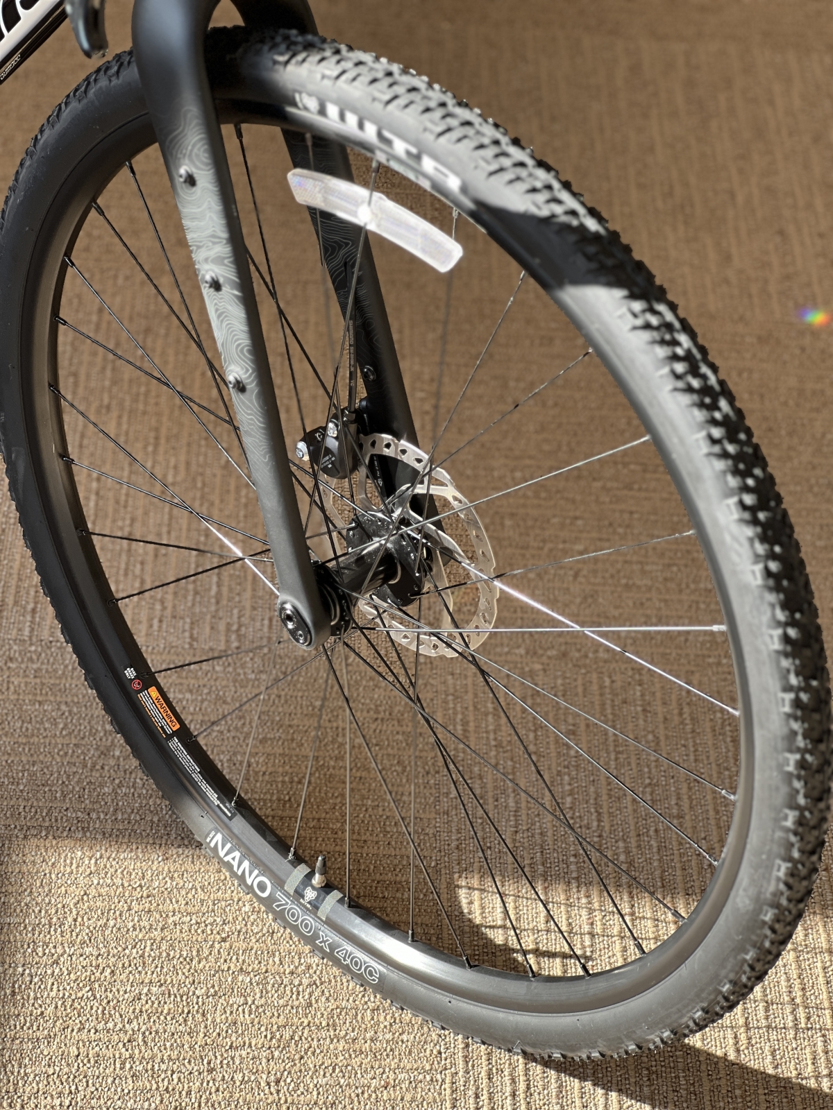 タイヤも同じくアメリカ生まれオフロードパーツブランドであるWTBのNANO 40c。所謂ブロックタイヤです。リムもWTBでTCS(Tubeless Compativle System)ですのでチューブレスレディ対応のタイヤやリムテープ、バルブを用意することでチューブレス運用可能です。