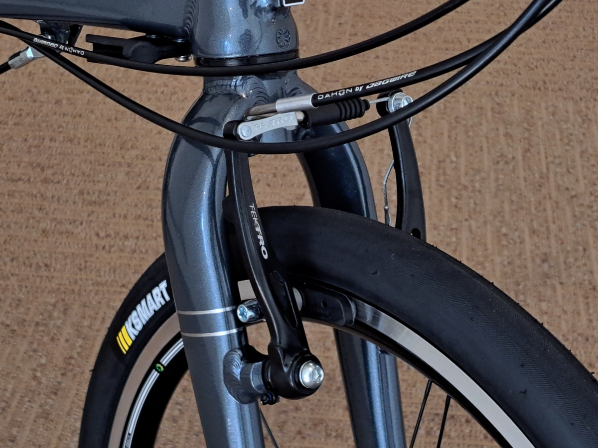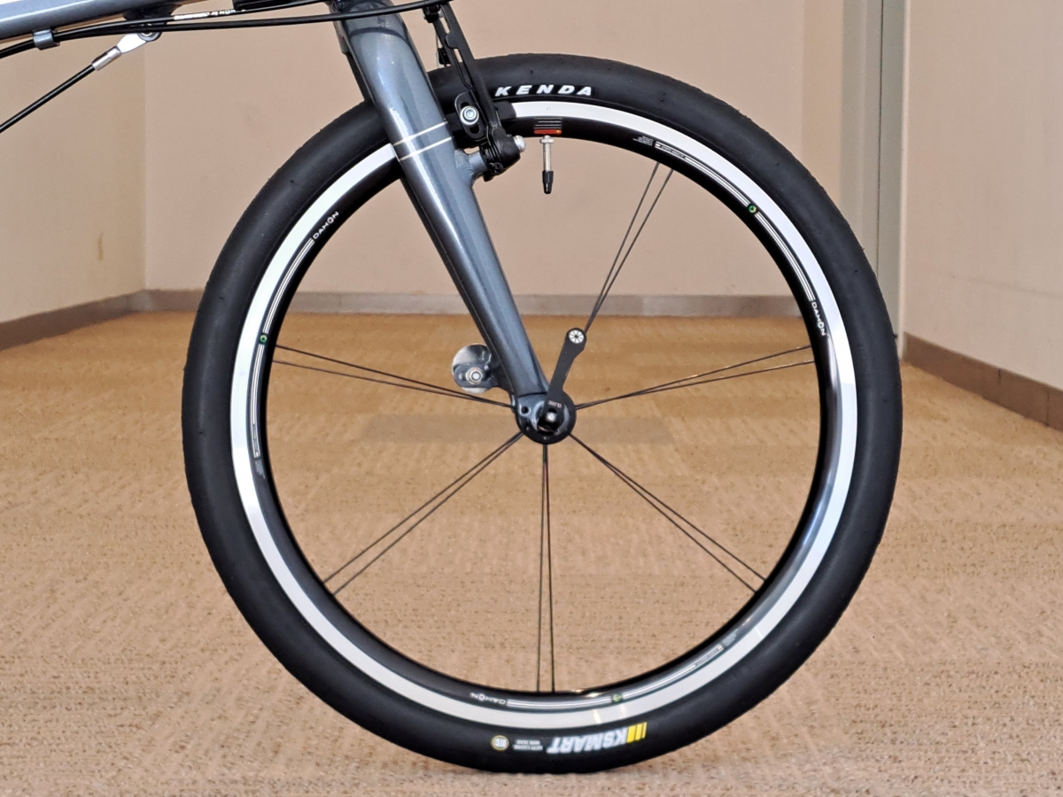 フロントホイールは元々DAHON Proを採用していましたが今回TXではリアもDAHON Proにアップグレードしています。これにより軽量化や掛かりが良くなり全体的な性能が上がりました。