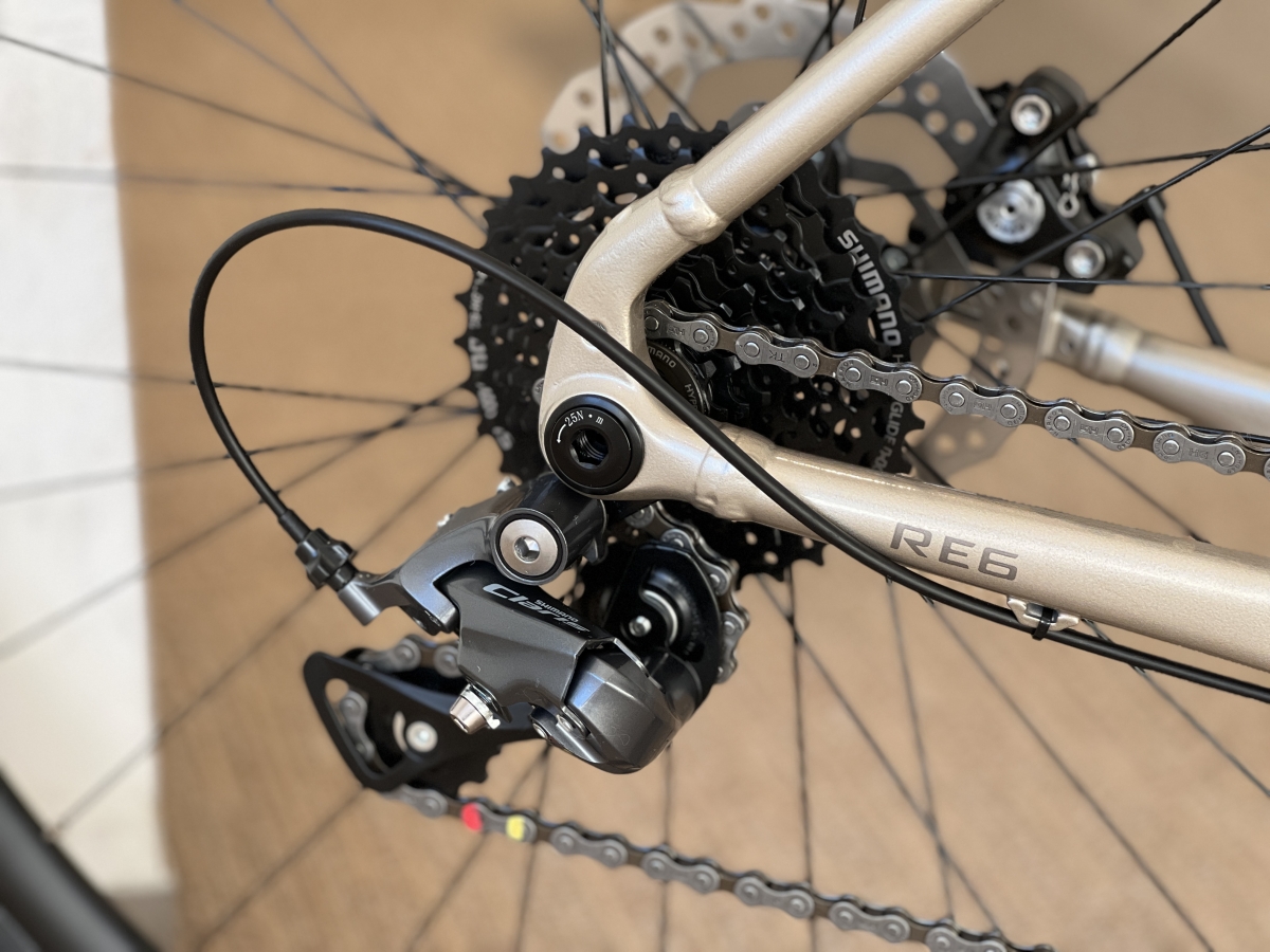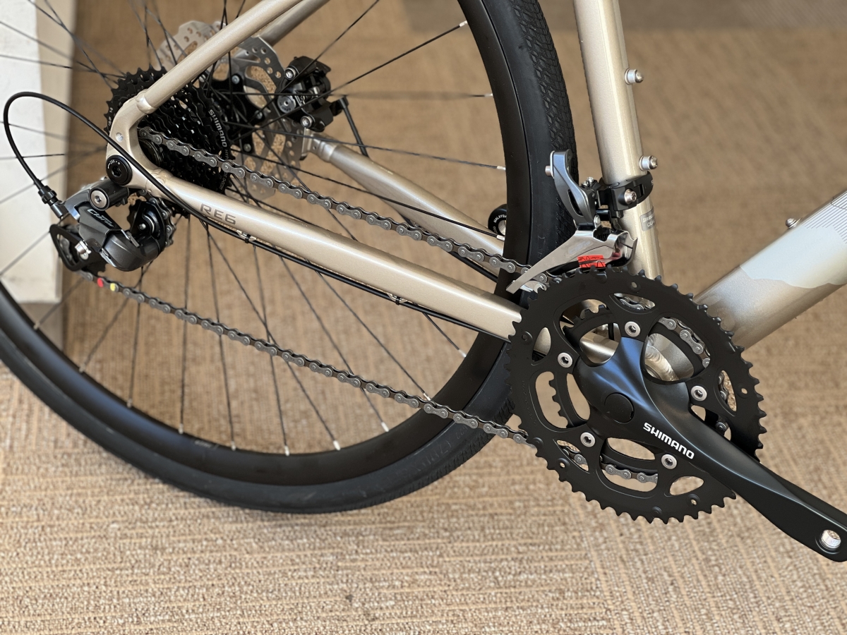 エントリーモデルにありがちなクランクやブレーキキャリパーを安価なパーツブランドに妥協することなく変速機やクランク、ブレーキキャリパー等SHIMANOで揃えています。