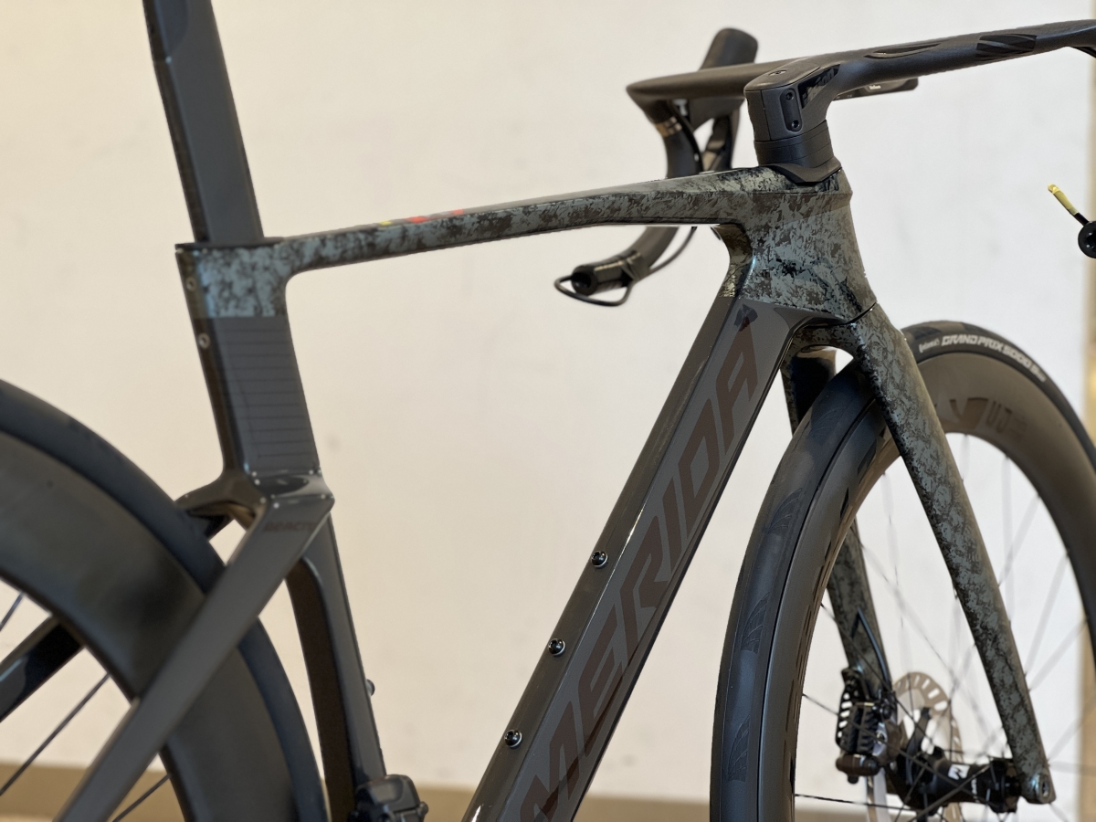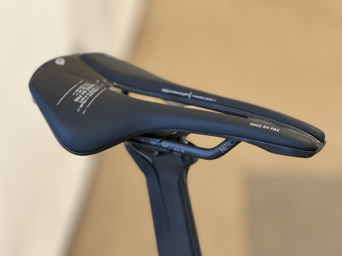 エラストマーは六角で固定する方式に変更され、脱落の不安も取り除かれました。サドルはPrologo Nago R4 PAS Nack カーボンレールです。