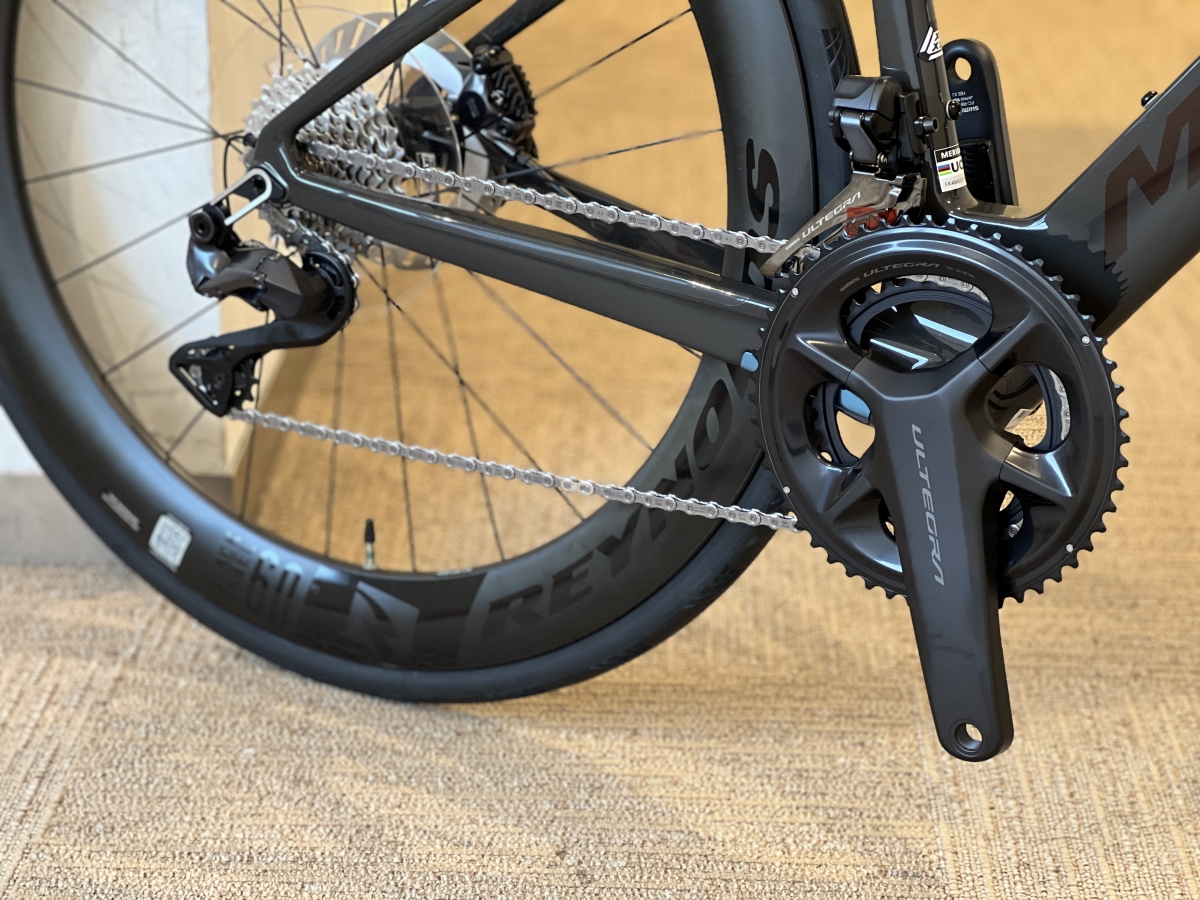 採用しているコンポーネントはSHIMANO ULTEGRA Di2。最上位グレードのDURA-ACEの正確かつスピーディな変速性能はそのままに手頃な価格で抑えた一番人気のグレードが標準で搭載されています。更に左クランクには4iiiiのパワーメーターが付いています。