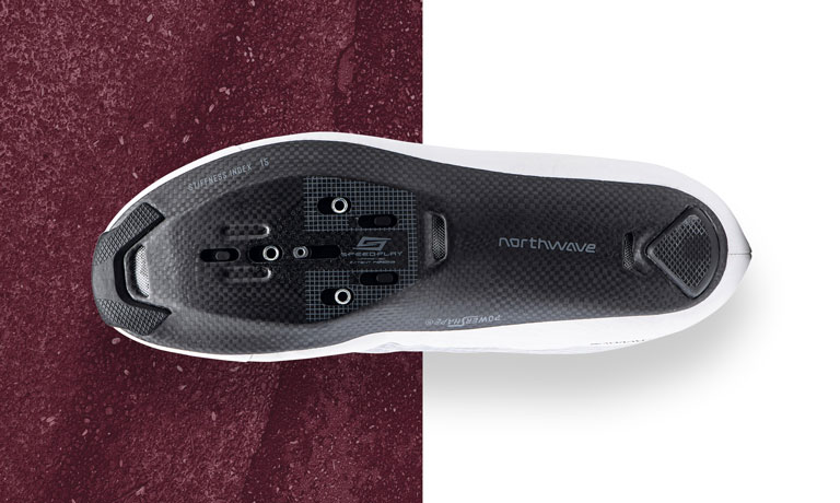 100%UDカーボンを使用したパワーシェイプカーボン15ソールは、足のアーチ部分と土踏まずの部分に独自のパワーシェイプシステムが採用されており、ライダーのパワーを無駄なくペダルに伝える事が出来ます。