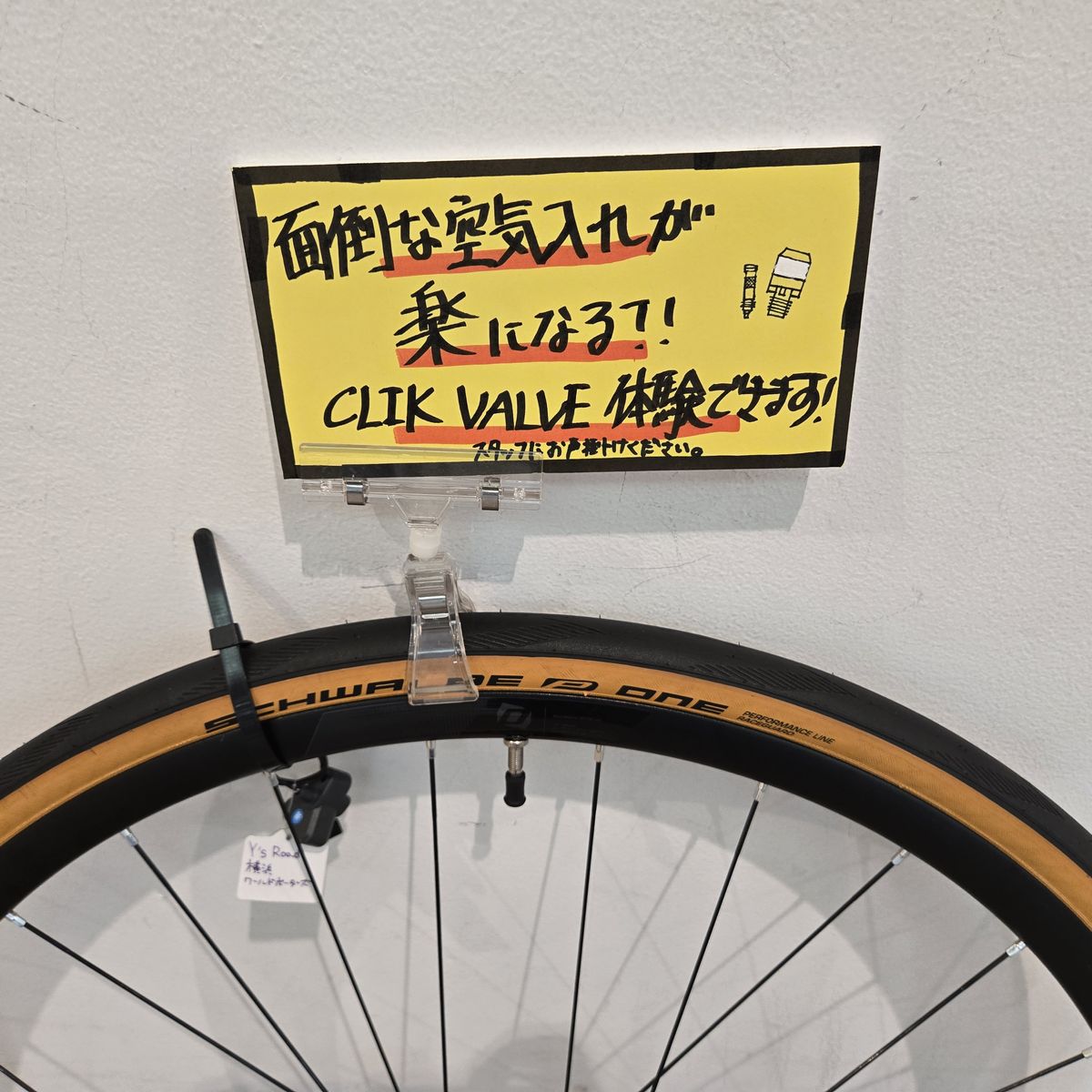 そこでワイズロード横浜ワールドポーターズ店では、CLIK VALVEを実際にお試しいただけるサンプルをご用意しています。